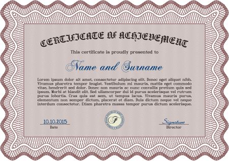Certificate, Diploma of completion; design template with guilloche pattern, border, frame.