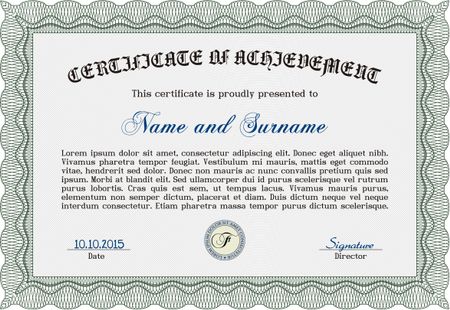 Certificate, Diploma of completion; design template with guilloche pattern, border, frame.