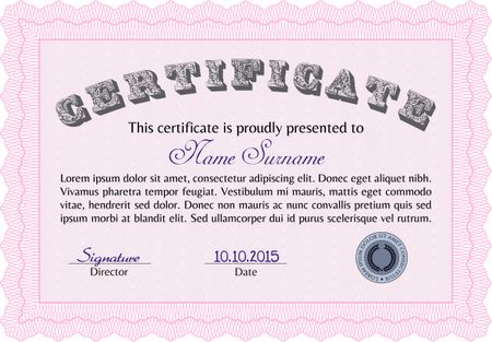 Certificate, Diploma of completion; design template with guilloche pattern, border, frame.