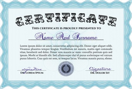 Certificate, Diploma of completion; design template with guilloche pattern, border, frame.