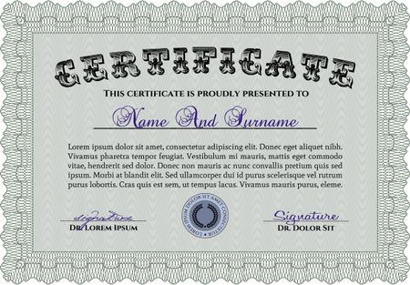 Certificate, Diploma of completion; design template with guilloche pattern, border, frame.