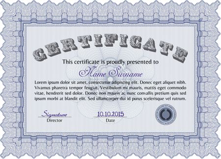 Certificate, Diploma of completion with guilloche pattern and background, border, frame. Certificate of Achievement, Certificate of education, awards, winner.