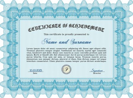 Certificate, Diploma of completion with guilloche pattern and background, border, frame. Certificate of Achievement, Certificate of education, awards, winner.