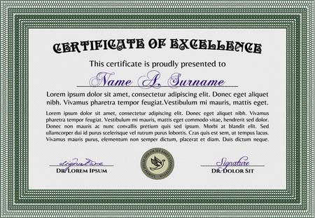 Certificate, Diploma of completion with guilloche pattern and background, border, frame. Certificate of Achievement, Certificate of education, awards, winner.