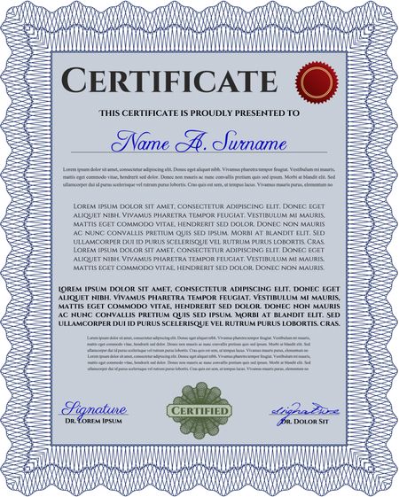 Certificate. Diploma of completion.With complex background. Good design.