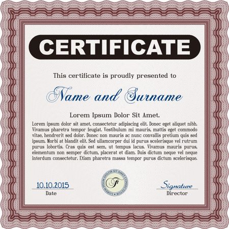 Certificate or diploma template. Artistry design. Complex background. Money style.