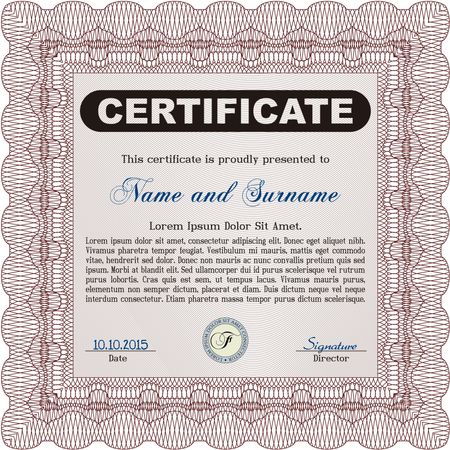 Certificate or diploma template. Border, frame. With background. Good design. Red color.