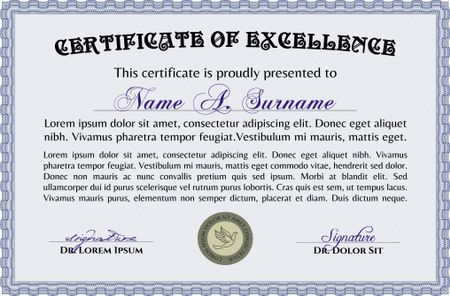 Certificate or diploma template. Border, frame.Retro design. With guilloche pattern and background.