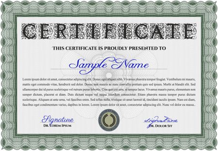 Certificate or diploma template. Cordial design. Customizable, Easy to edit and change colors. Easy to print. Green color.