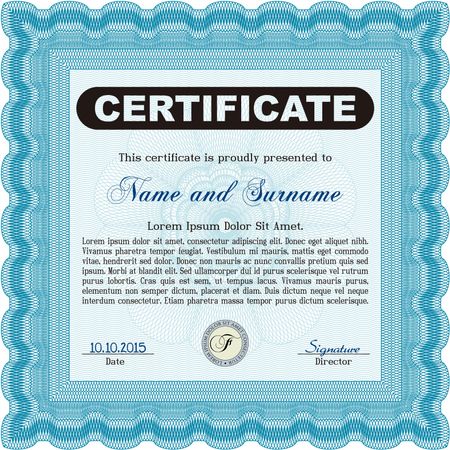 Certificate or diploma template. Cordial design. Easy to print. Customizable, Easy to edit and change colors. Light blue color.