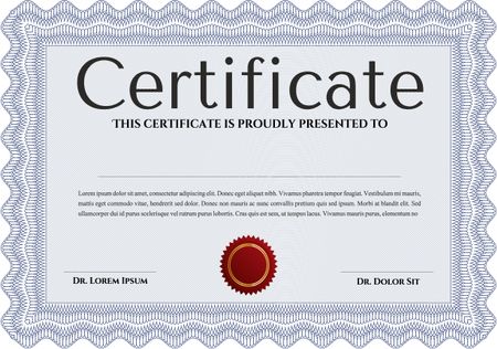 Certificate or diploma template. Cordial design. Easy to print. Customizable, Easy to edit and change colors. Blue color.