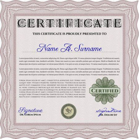 Certificate or diploma template. Cordial design. Easy to print. Customizable, Easy to edit and change colors. Red color.