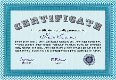 Certificate or diploma template. Customizable, Easy to edit and change colors.With quality background. Retro design.