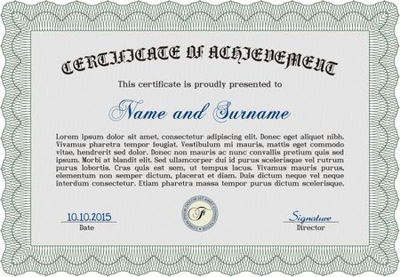 Certificate or diploma template. Customizable, Easy to edit and change colors. Easy to print. Cordial design. Green color.