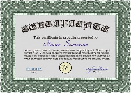 Certificate or diploma template. Diploma of completion.Excellent design. With complex background.