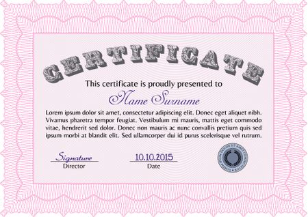 Certificate or diploma template. Easy to print. Retro design. Vector pattern that is used in money and certificate.