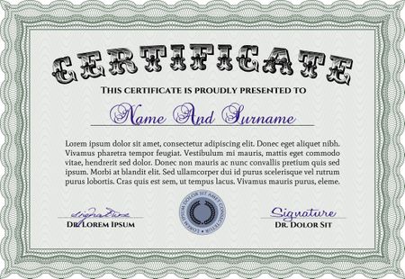 Certificate or diploma template. With great quality guilloche pattern. Artistry design. Vector certificate template.