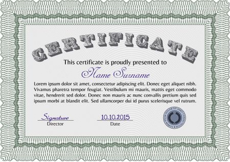 Certificate or diploma template. Money style.Elegant design. With guilloche pattern.