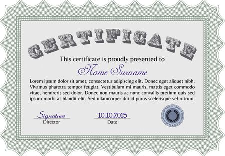 Certificate or diploma template. Vector illustration.Excellent design. With guilloche pattern and background.