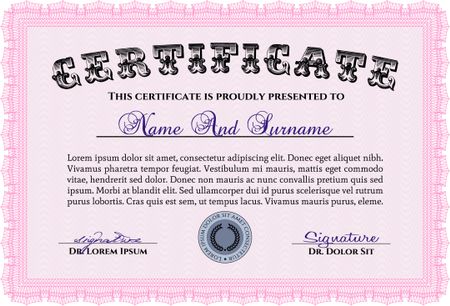 Certificate or diploma template. Vector pattern that is used in money and certificate. With background. Artistry design.