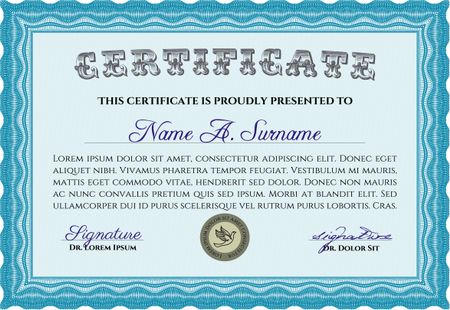 Certificate. Elegant design. With guilloche pattern and background. Frame certificate template Vector.
