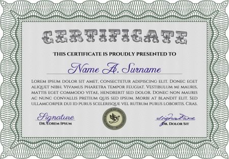 Certificate. Excellent design. Frame certificate template Vector.With great quality guilloche pattern.