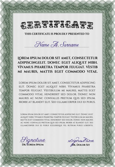 Certificate. With guilloche pattern and background. Elegant design. Detailed.