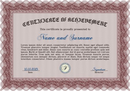 Certificate. With guilloche pattern and background. Elegant design. Detailed.
