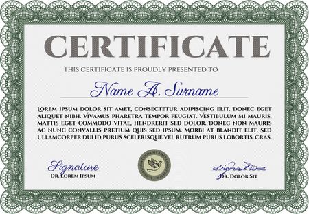 Certificate. Printer friendly. Complex design. Detailed. Green color.
