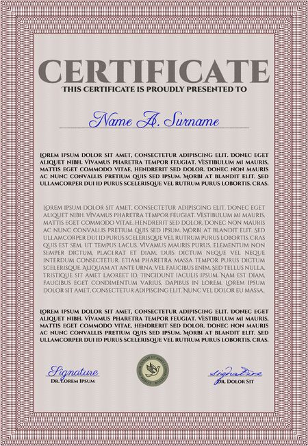 Certificate. Printer friendly. Complex design. Detailed. Red color.