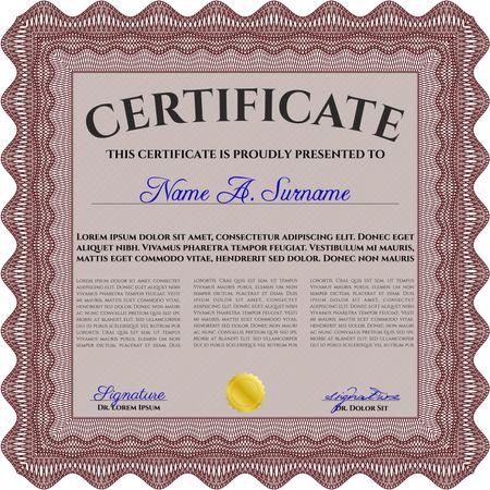 Certificate. Printer friendly. Complex design. Detailed. Red color.