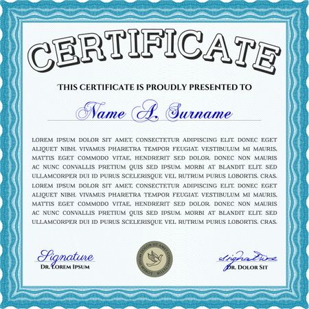Certificate template. Customizable, Easy to edit and change colors. Nice design. Easy to print. Light blue color.
