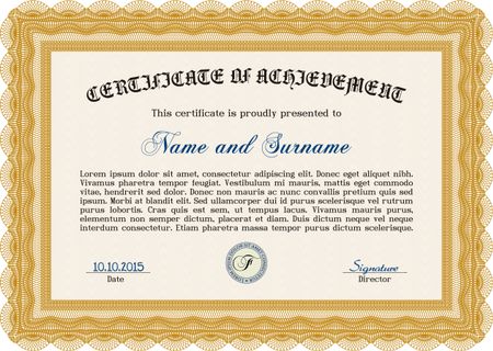 Certificate template. Customizable, Easy to edit and change colors. Easy to print. Nice design. Orange color.