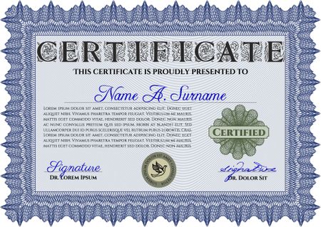 Certificate template. Detailed. Printer friendly. Nice design. Blue color.