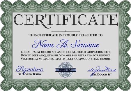 Certificate template. Detailed. Printer friendly. Nice design. Green color.