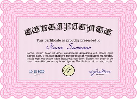 Certificate template or diploma template. Beauty design. Vector pattern that is used in currency and diplomas.Complex background. Pink color.