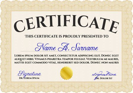 Certificate template or diploma template. Complex background. Superior design. Vector pattern that is used in currency and diplomas.Orange color.