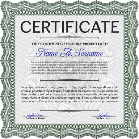 Certificate template or diploma template. Complex background. Beauty design. Vector pattern that is used in currency and diplomas.Green color.
