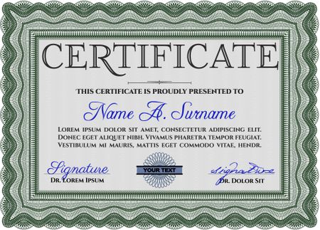 Certificate template or diploma template. Complex background. Vector pattern that is used in currency and diplomas.Beauty design. Green color.