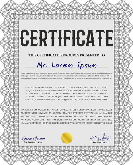 Certificate template or diploma template. Complex background. Vector pattern that is used in currency and diplomas.Beauty design. Grey color.