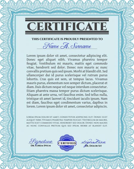 Certificate template or diploma template. Detailed.Beauty design. With guilloche pattern.