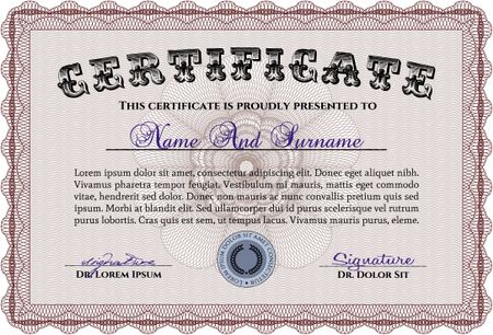 Certificate template or diploma template. Superior design. With guilloche pattern and background. Vector pattern that is used in money and certificate.