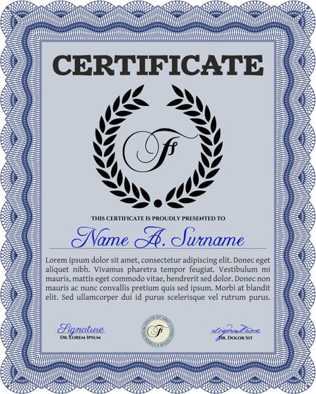 Certificate template or diploma template. Superior design. Complex background. Vector pattern that is used in currency and diplomas.Blue color.
