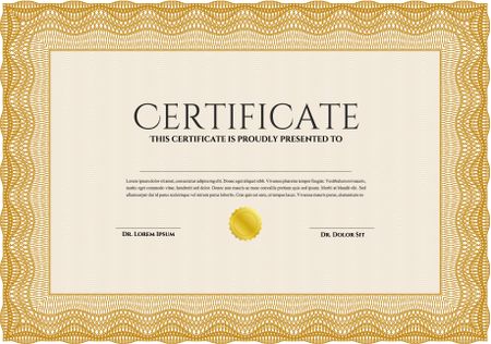 Certificate template or diploma template. Vector pattern that is used in currency and diplomas.Complex background. Superior design. Orange color.