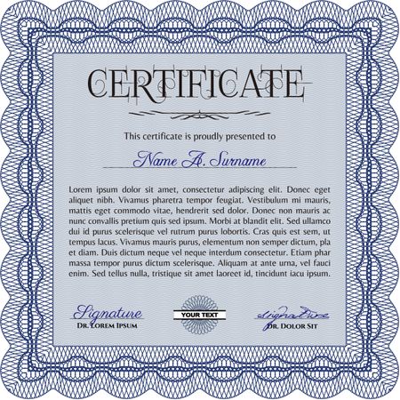 Certificate template or diploma template. Vector pattern that is used in currency and diplomas.Complex background. Beauty design. Blue color.