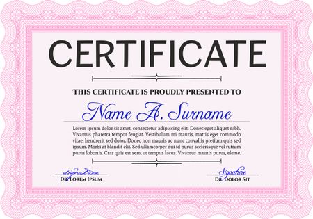 Certificate template or diploma template. Vector pattern that is used in currency and diplomas.Complex background. Beauty design. Pink color.