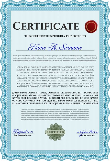 Certificate template or diploma template. Vector pattern that is used in currency and diplomas.Superior design. Complex background. Light blue color.
