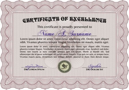 Certificate template. With great quality guilloche pattern. Retro design. Border, frame.