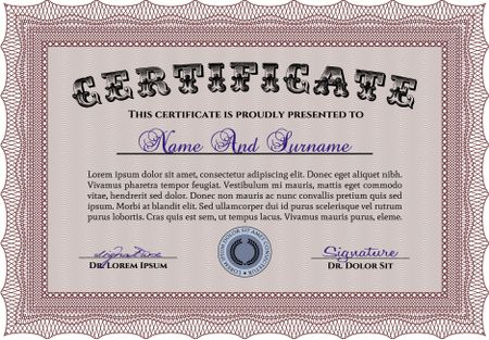 Certificate template. Nice design. Detailed. Printer friendly. Red color.