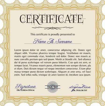 Certificate template. Printer friendly. Detailed. Nice design. Orange color.